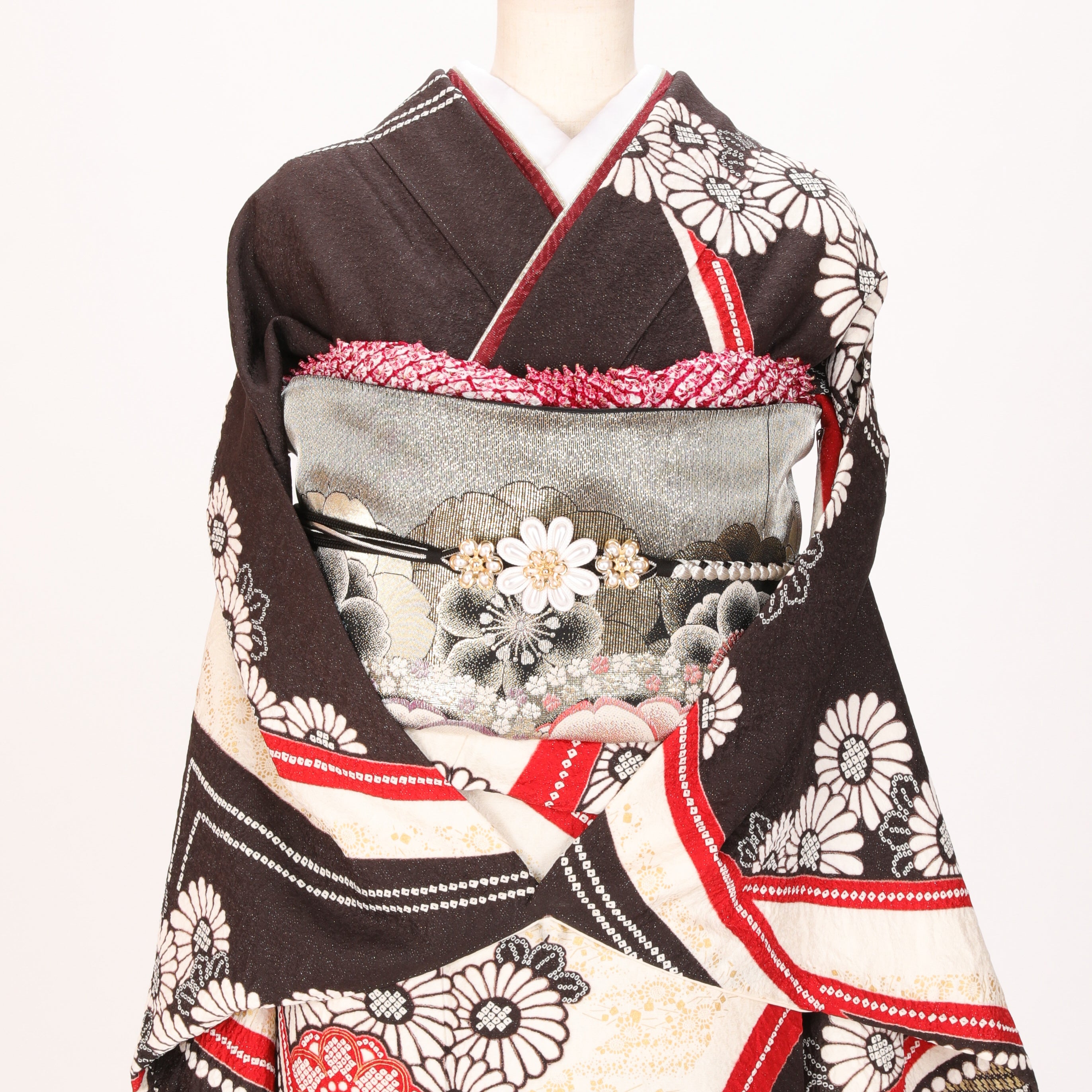 ワインレッドと黒を基調とした華やかな振袖小物セットです。