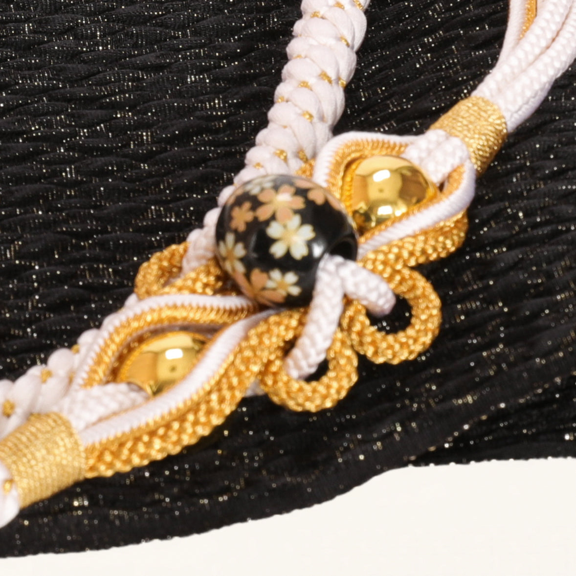 《帯締め》白にビーズ玉の組紐デザイン。