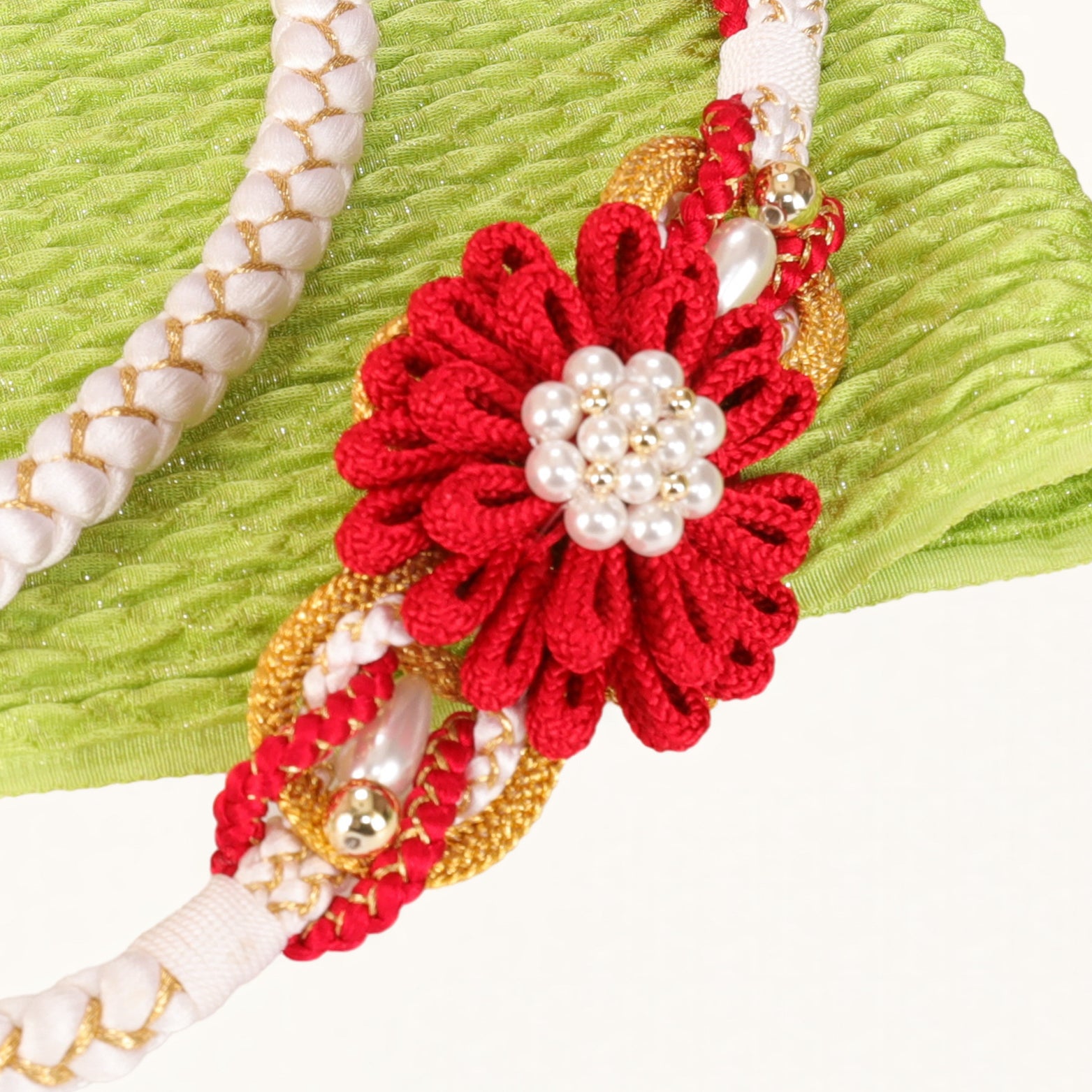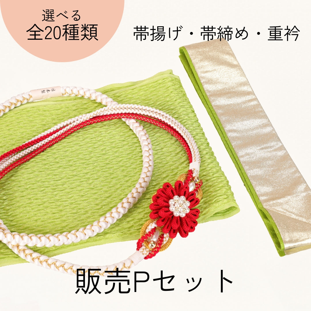【販売】振袖小物3点 Pセット 黄緑/鶸色/紅白