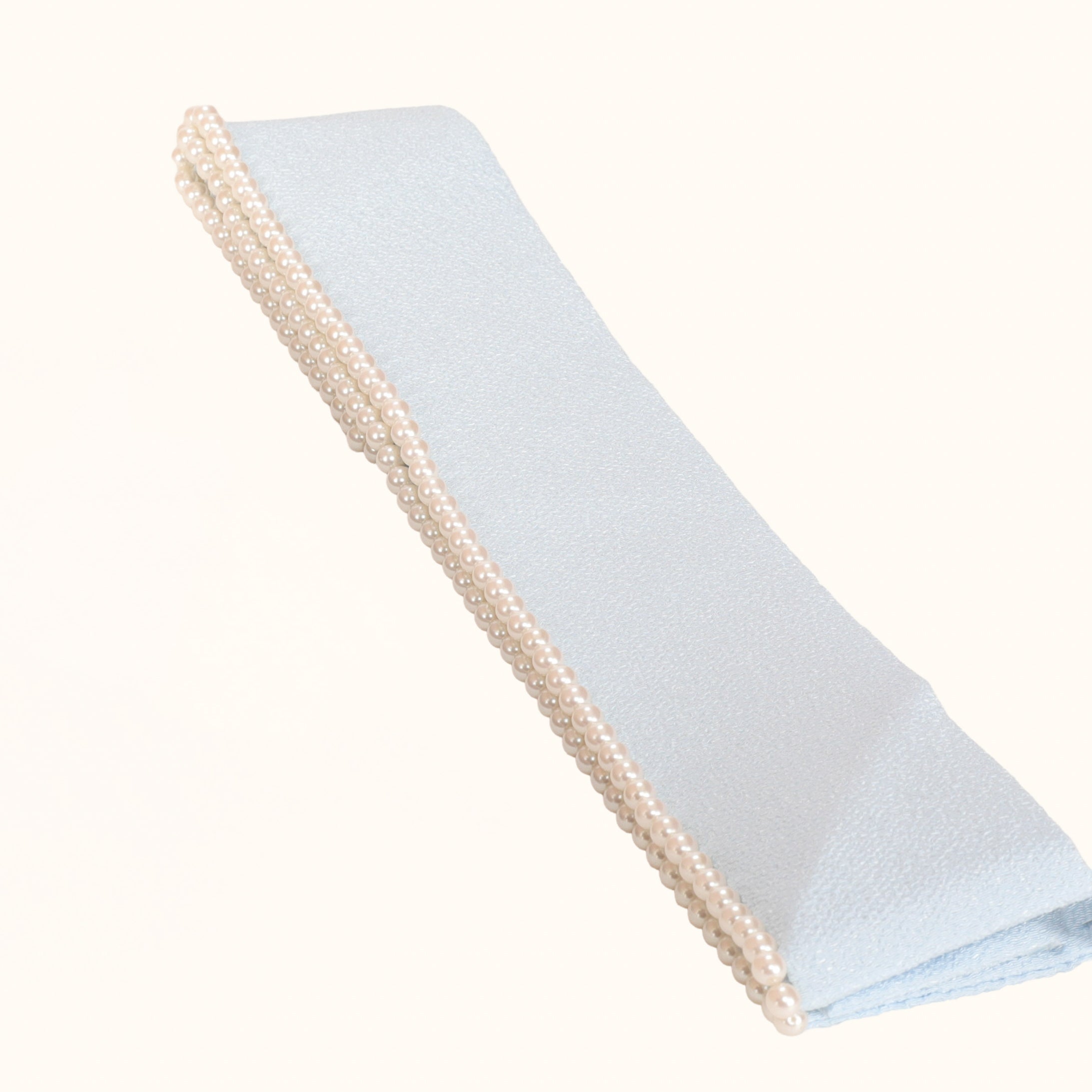 《重ね衿》ホワイトパールで襟元を華やかに演出。
