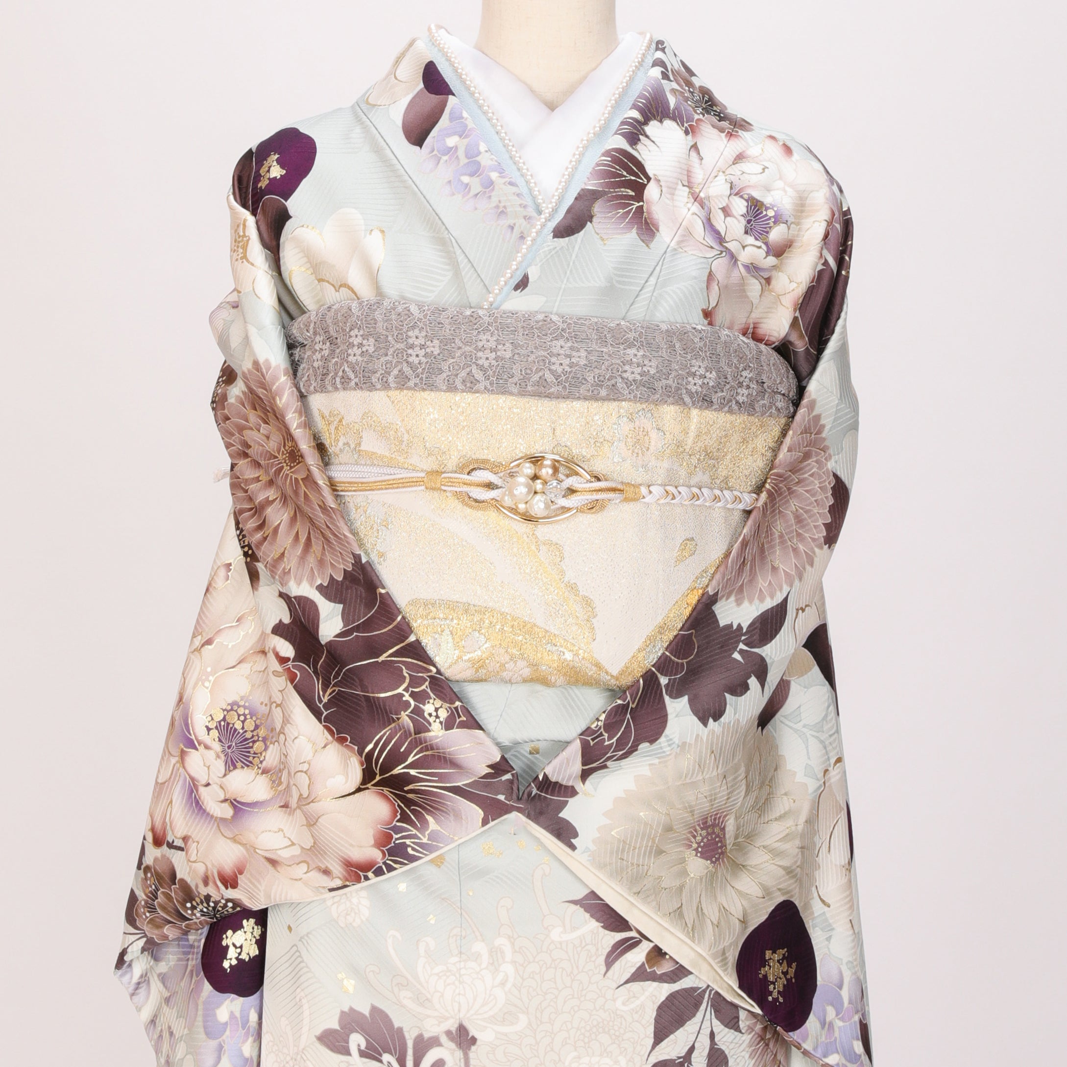 くすみカラーを基調とした華やかな振袖小物セットです。