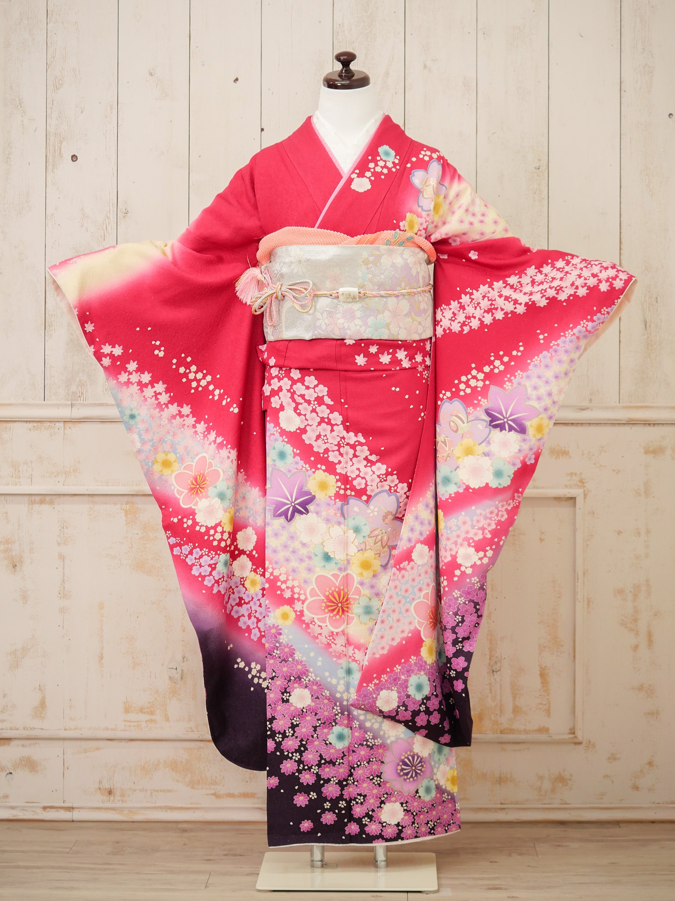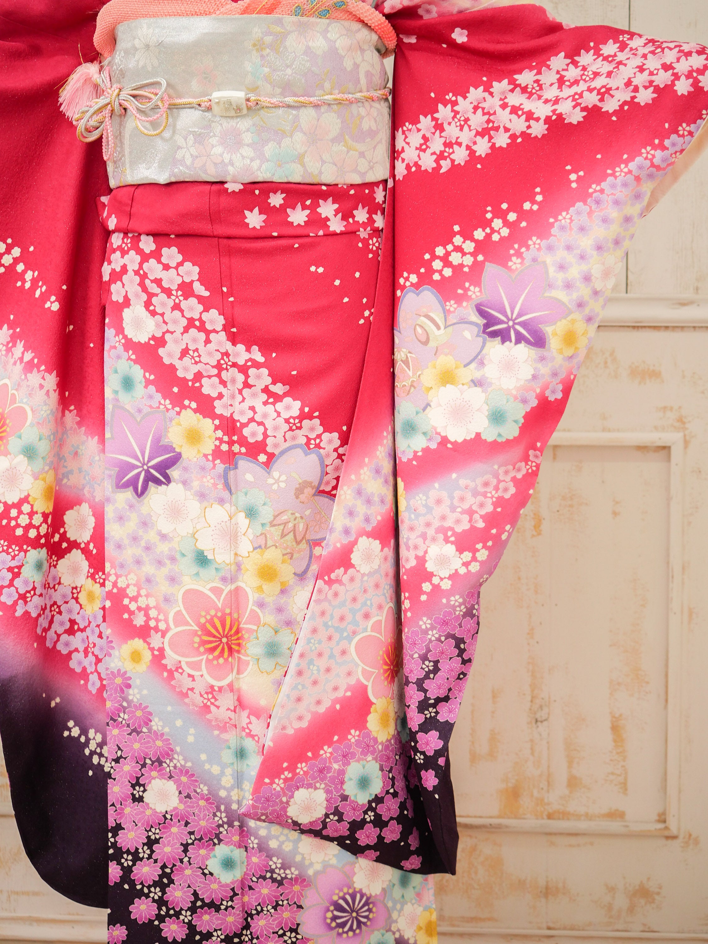 満開の桜が舞い降りたような幻想的なデザイン。赤から紫へのグラデーションが美しく、春の訪れを思わせる華やかさ。蝶や花々が可憐に彩り、ふんわり優しい印象を与えてくれます。