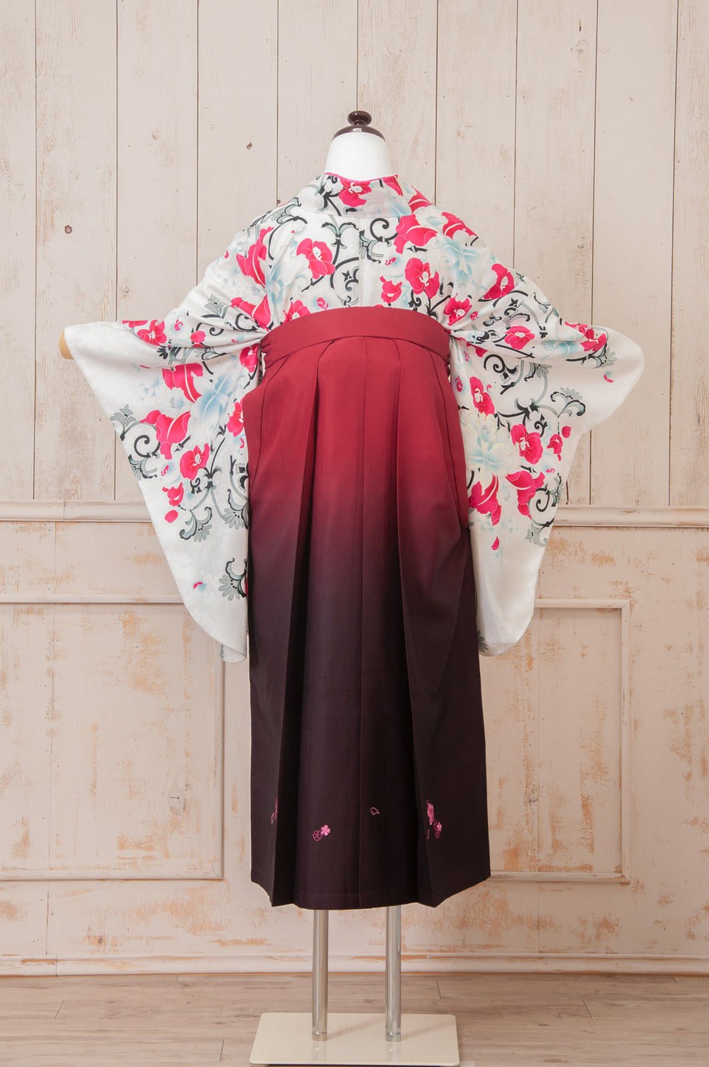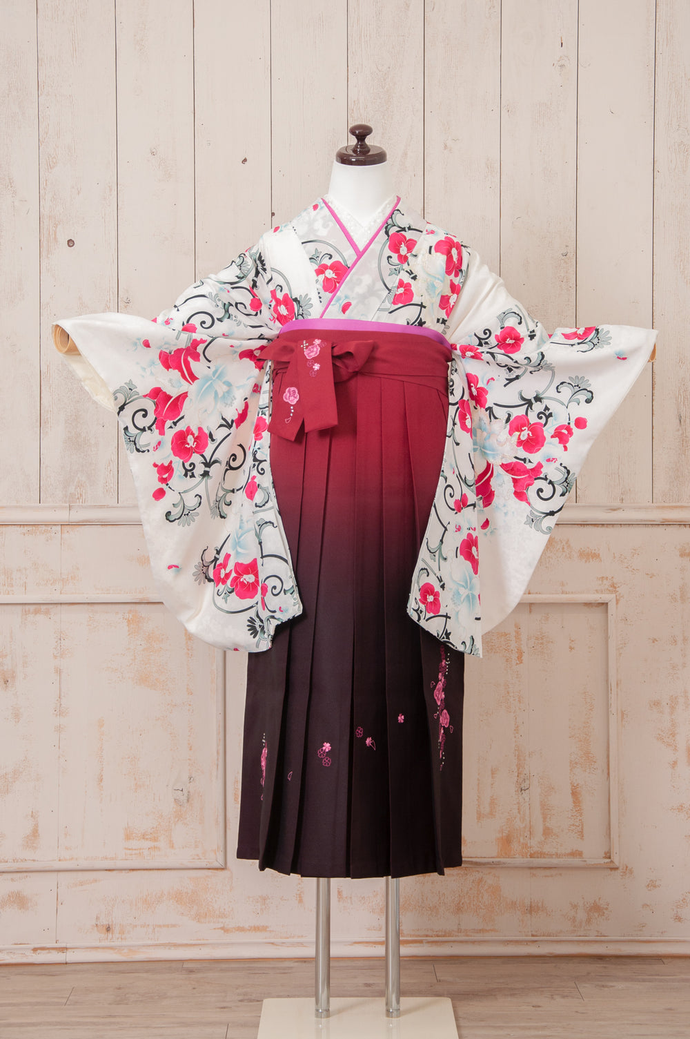 KR-115/白地ピンク牡丹 卒業袴