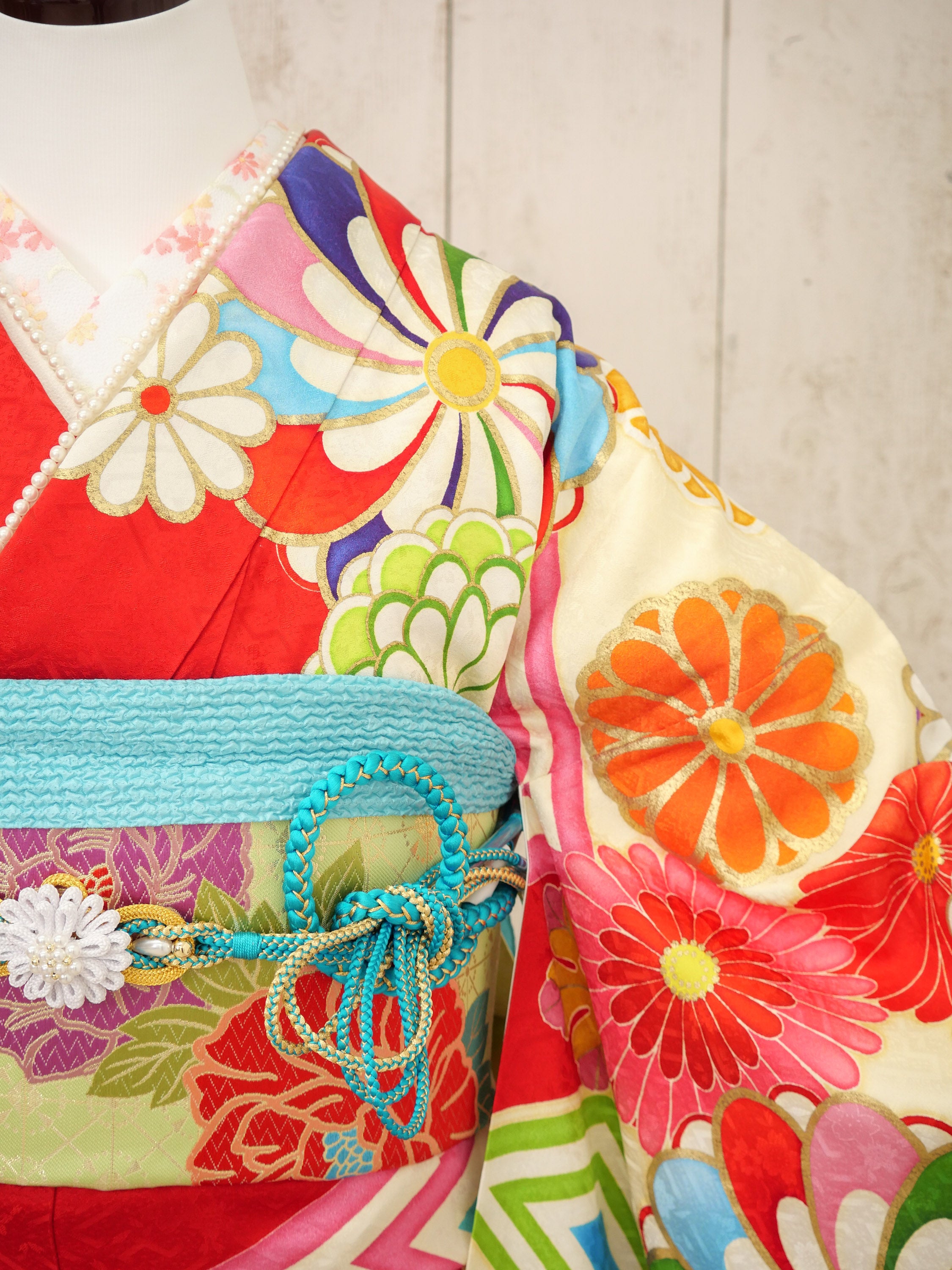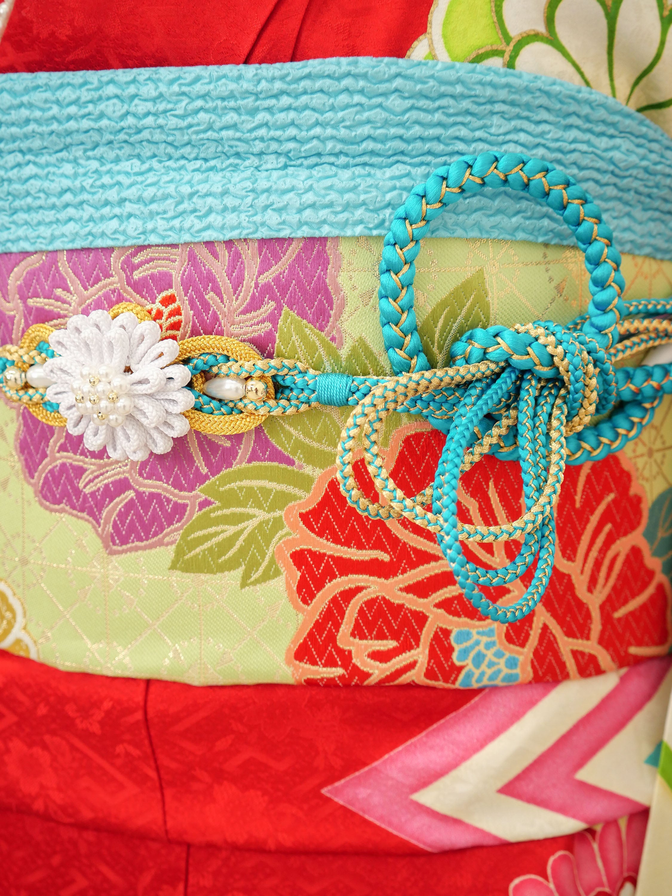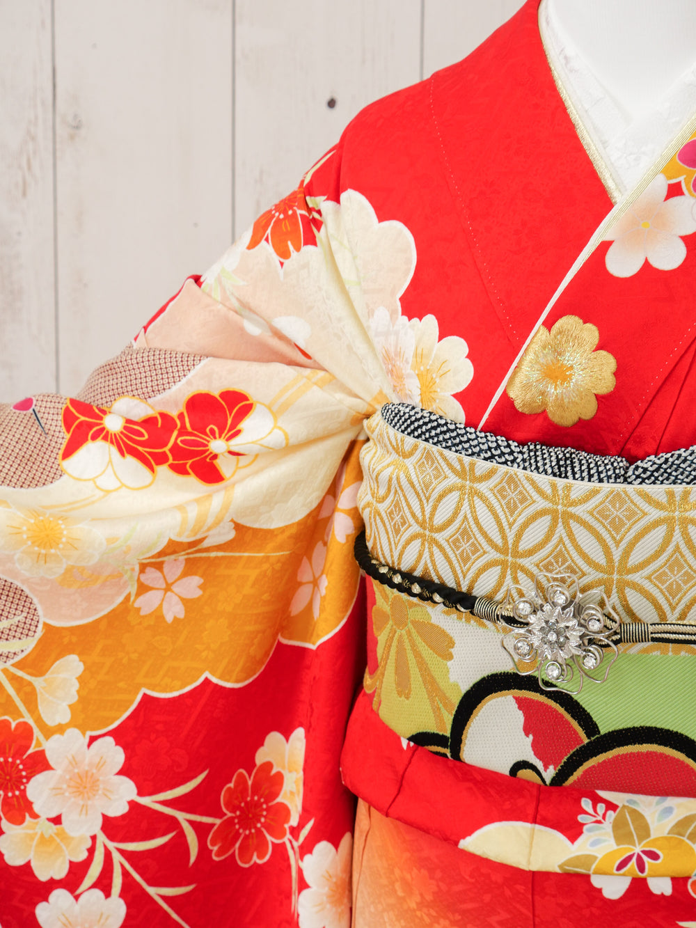中振袖袋帯長襦袢(半襟付き、ポリエステル)重ね衿(着物に縫い付けの商品あり)帯揚げ帯締めショール腰紐5伊達締め2衿芯前板後板帯枕(ガーゼ付き)コーリンベルト1三重紐草履バッグ
