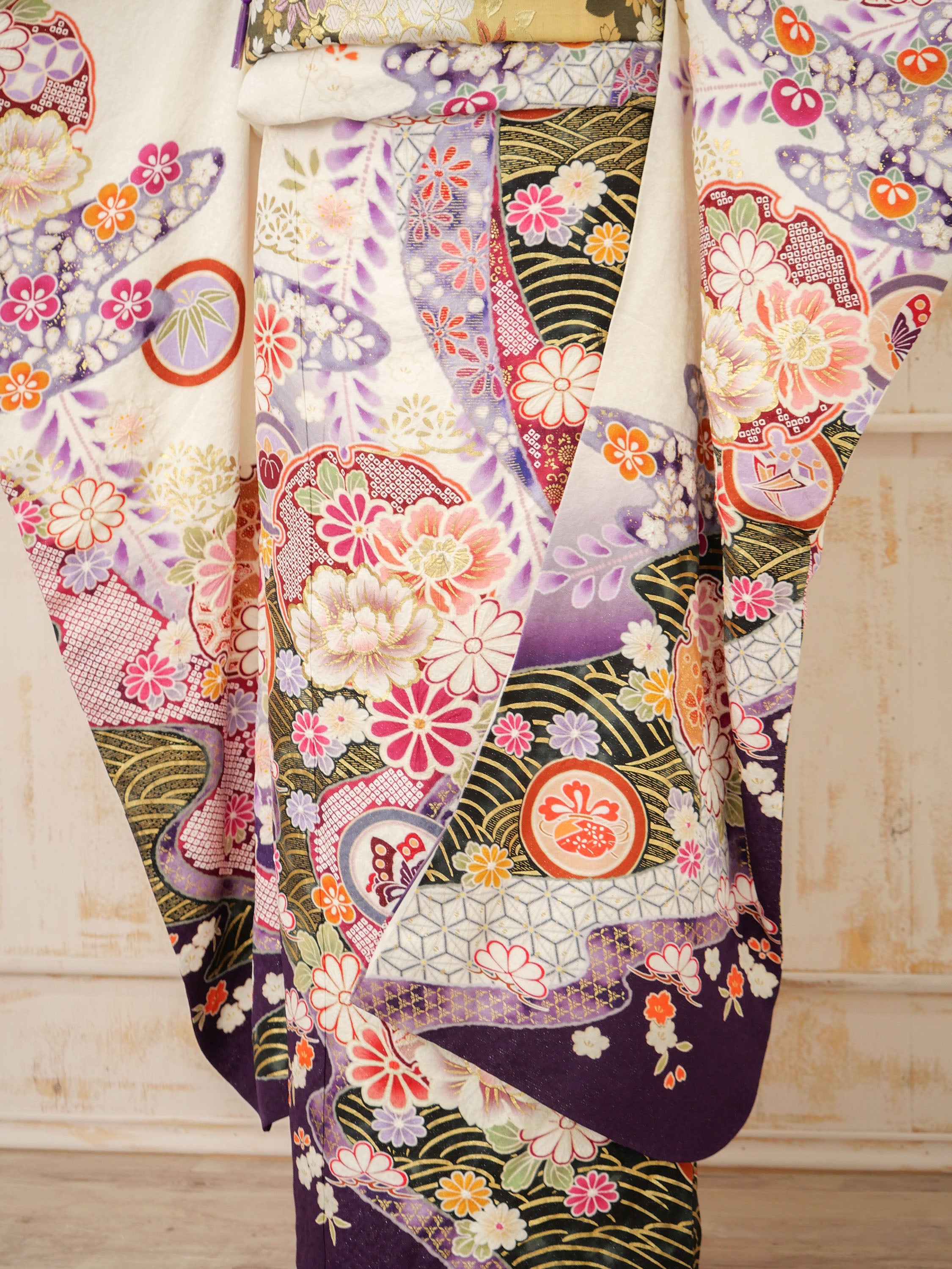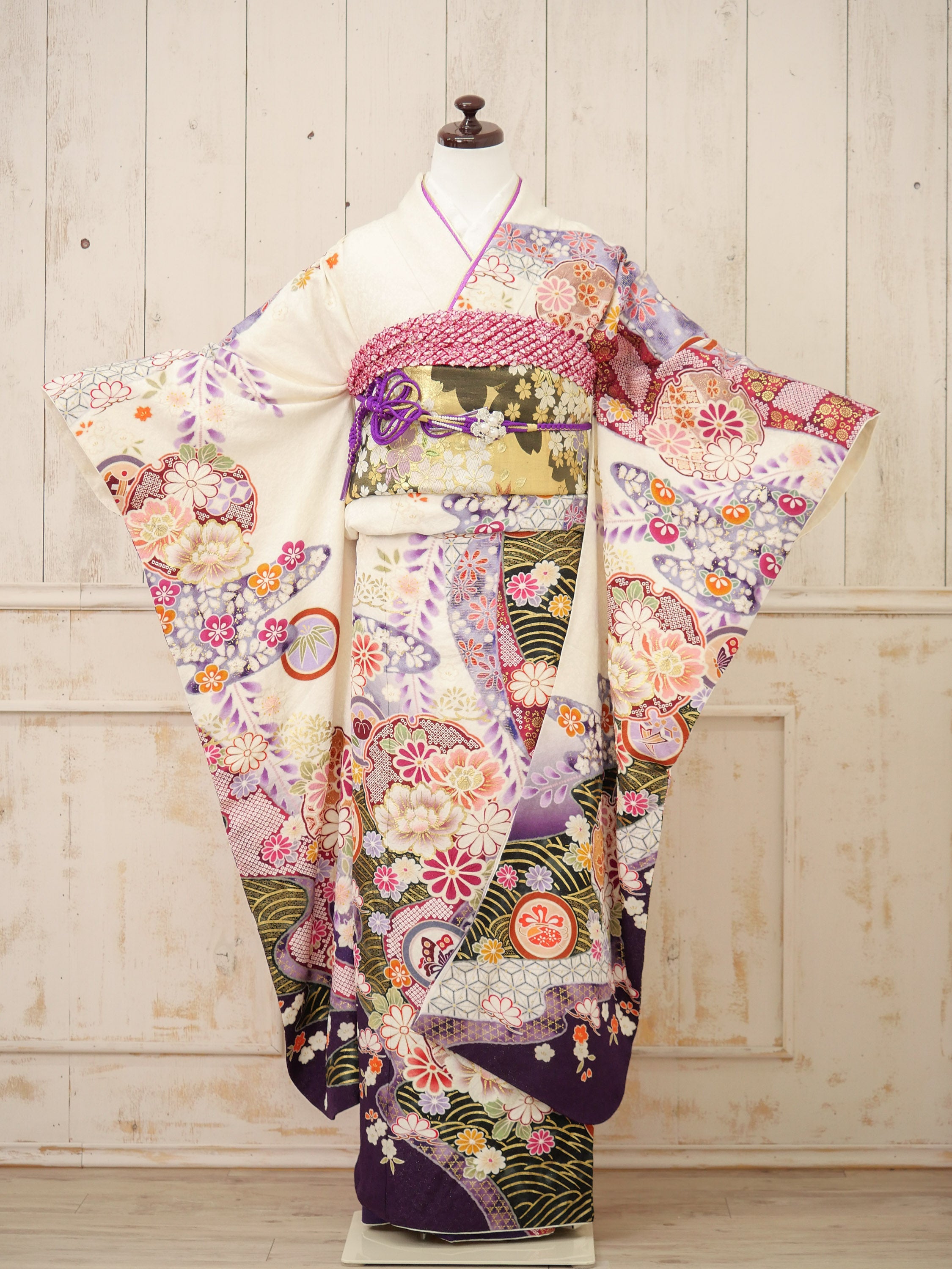 - FI-019 白地伝統文様×紫 振袖