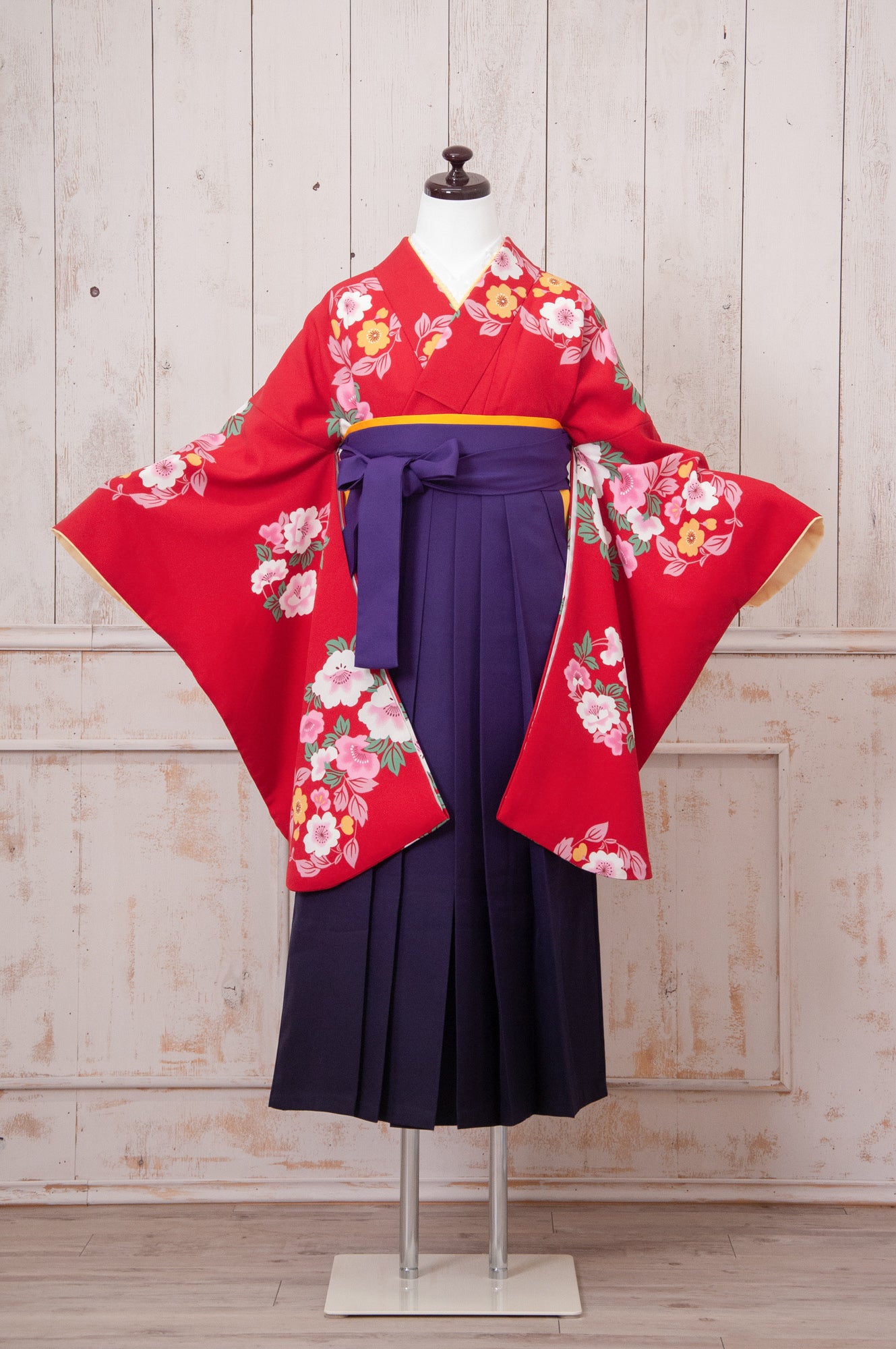 KR-076/赤地に花輪 卒業袴