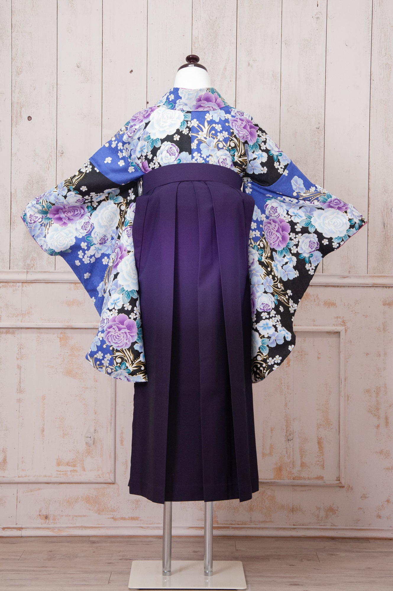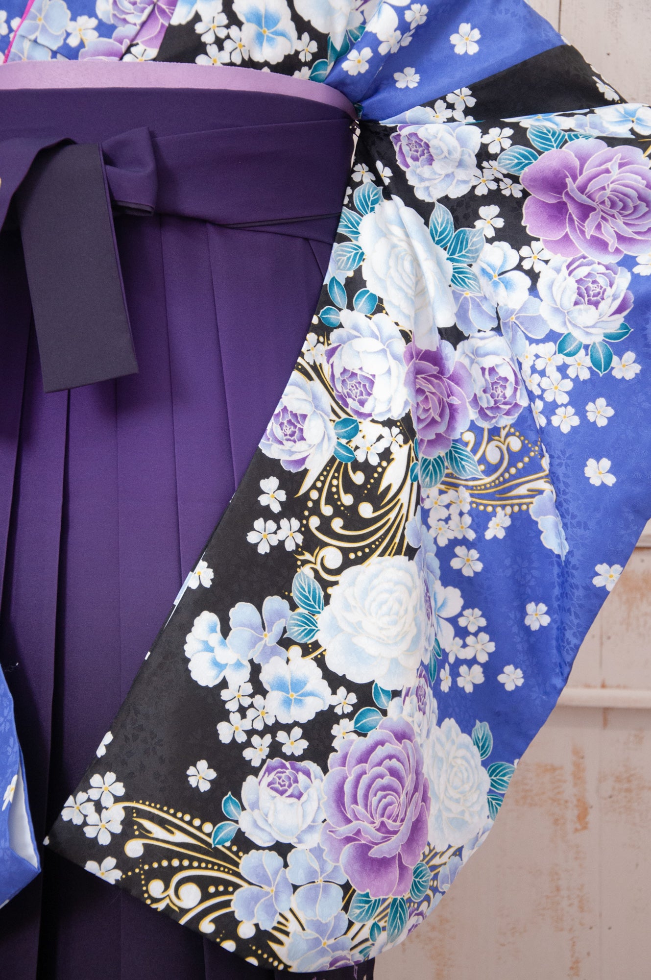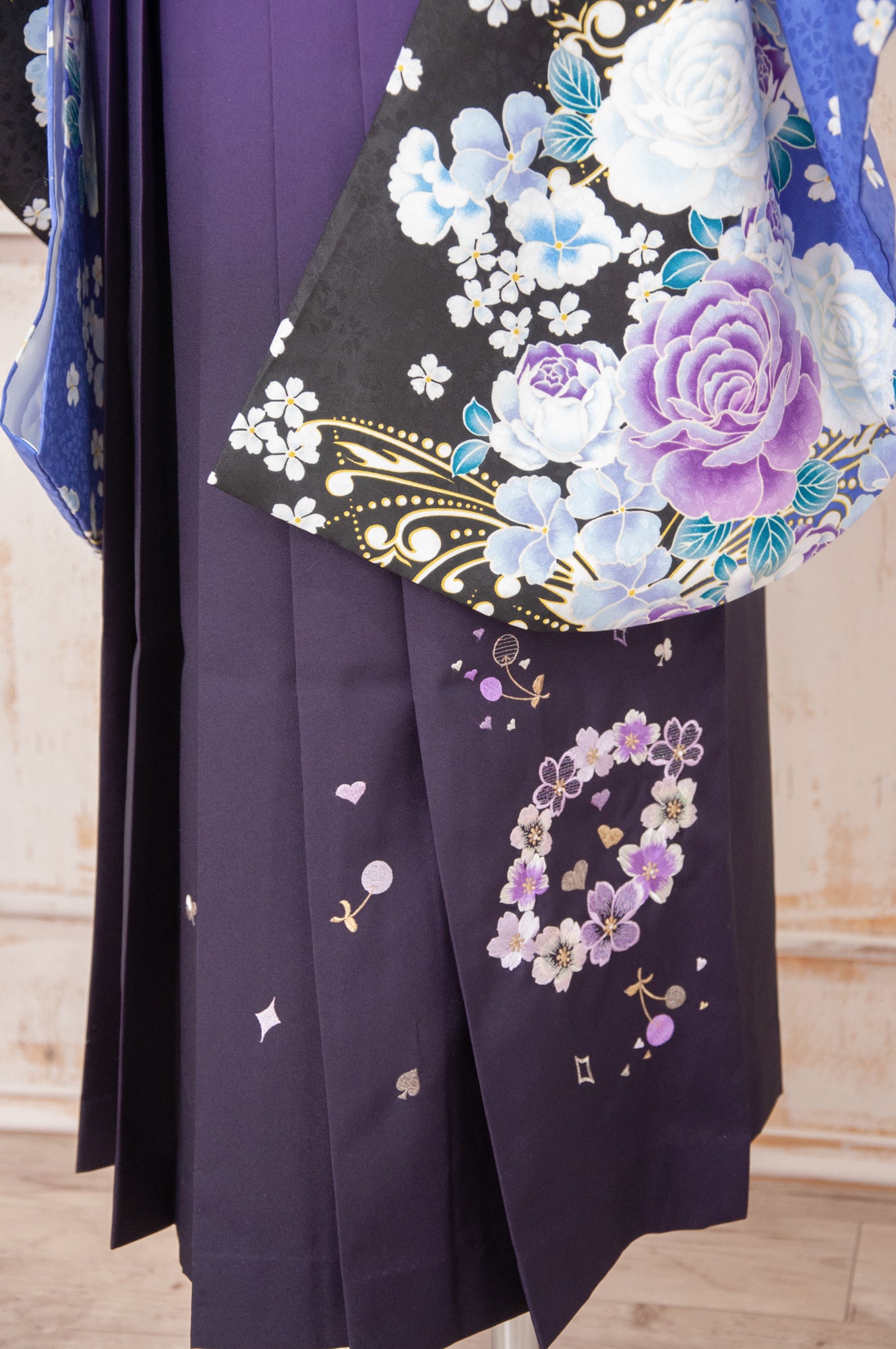 ブルーとラベンダーのバラが咲き誇る、幻想的でゴージャスな袴スタイル。