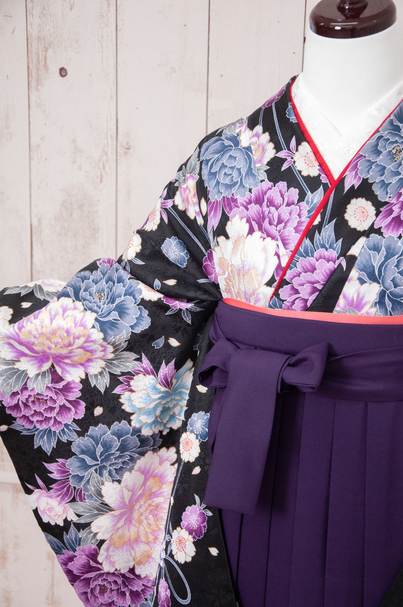 二尺袖着物、袴、半幅帯、長襦袢(半襟付き、ポリエステル)、重ね衿(着物に縫い付けの商品あり)、和装肌着、腰紐3本、伊達締め2本、衿芯、帯板、コーリンベルト1本、巾着