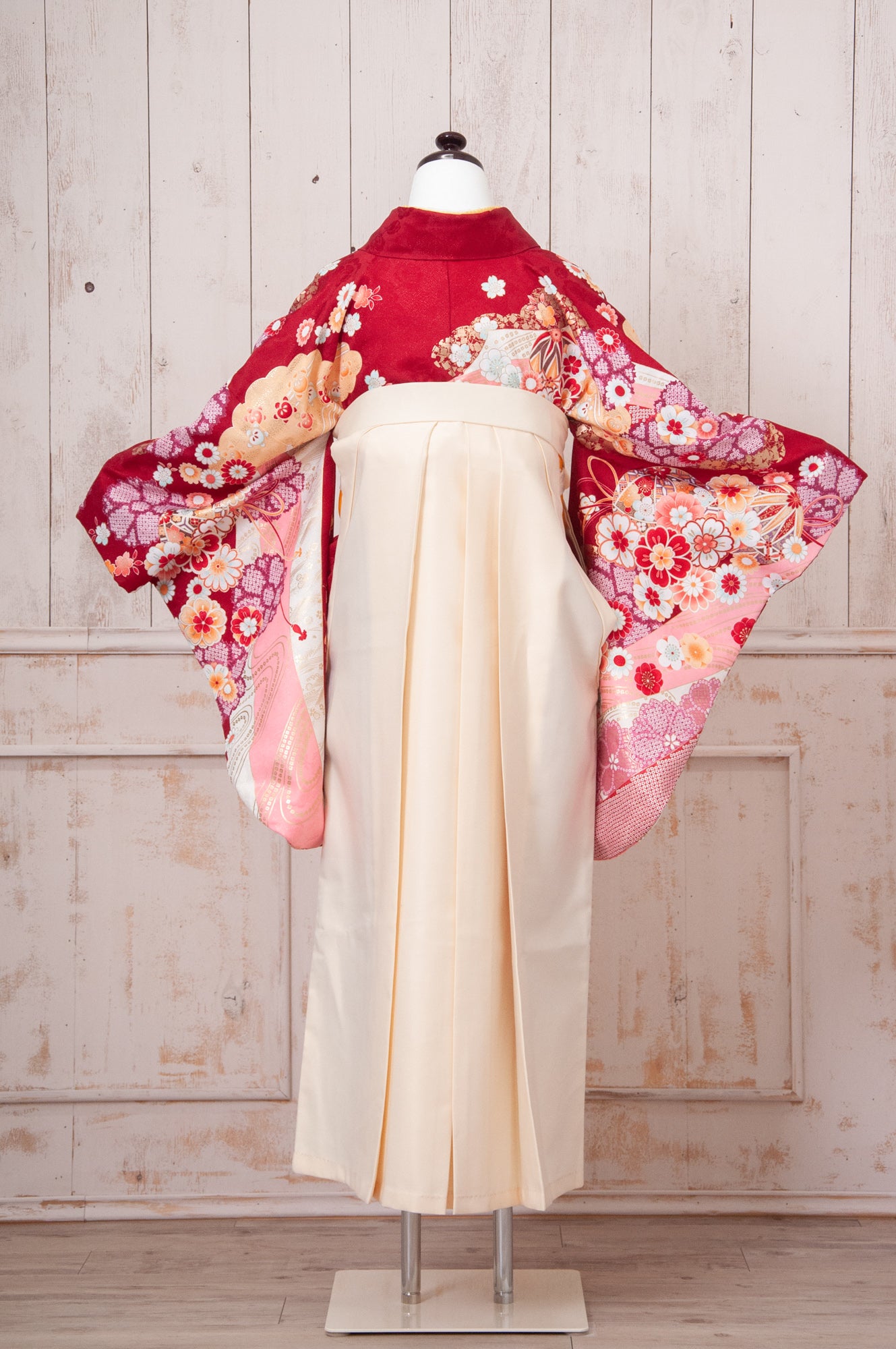 二尺袖着物、袴、半幅帯、長襦袢(半襟付き、ポリエステル)、重ね衿(着物に縫い付けの商品あり)、和装肌着、腰紐3本、伊達締め2本、衿芯、帯板、コーリンベルト1本、巾着