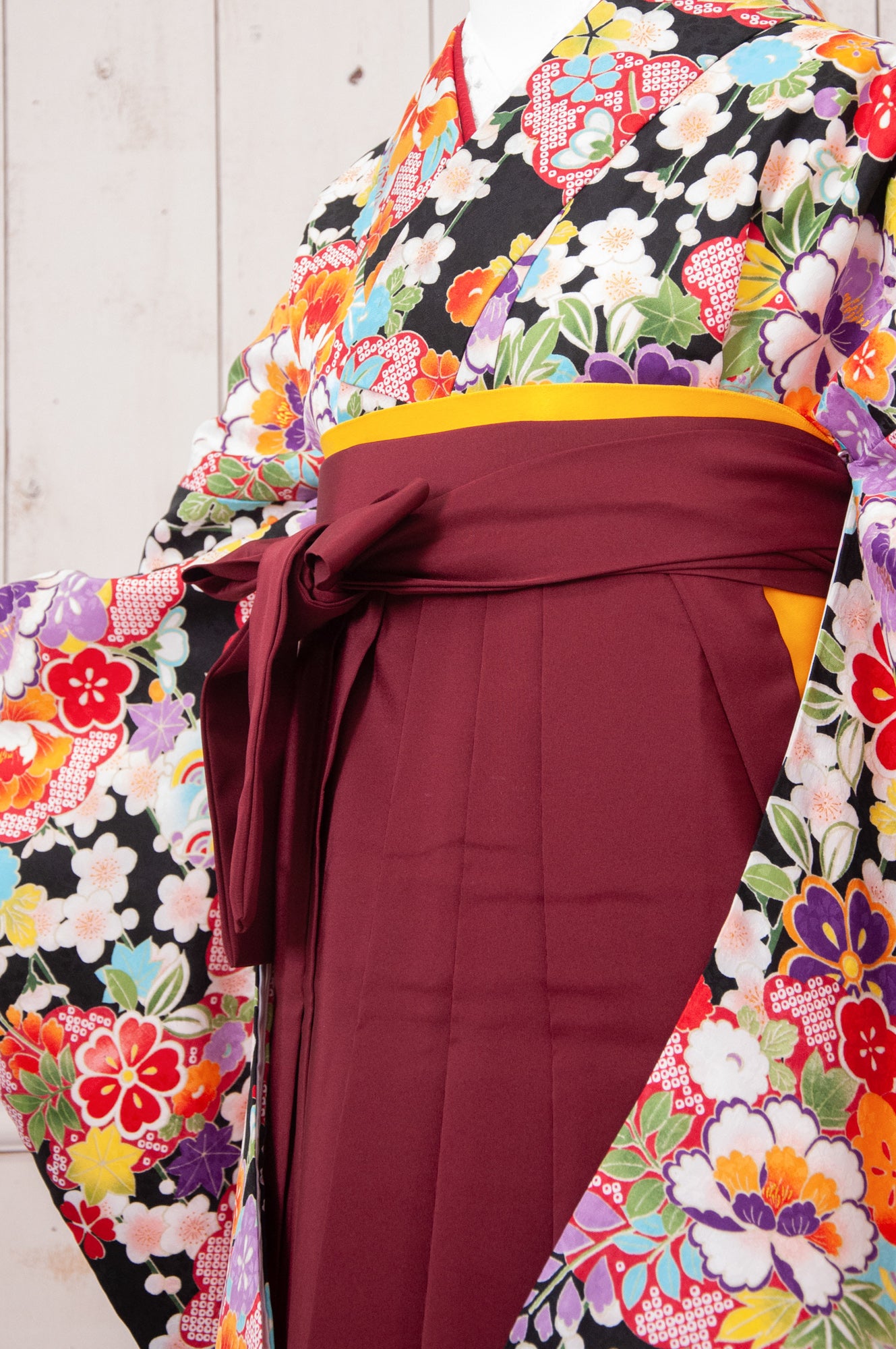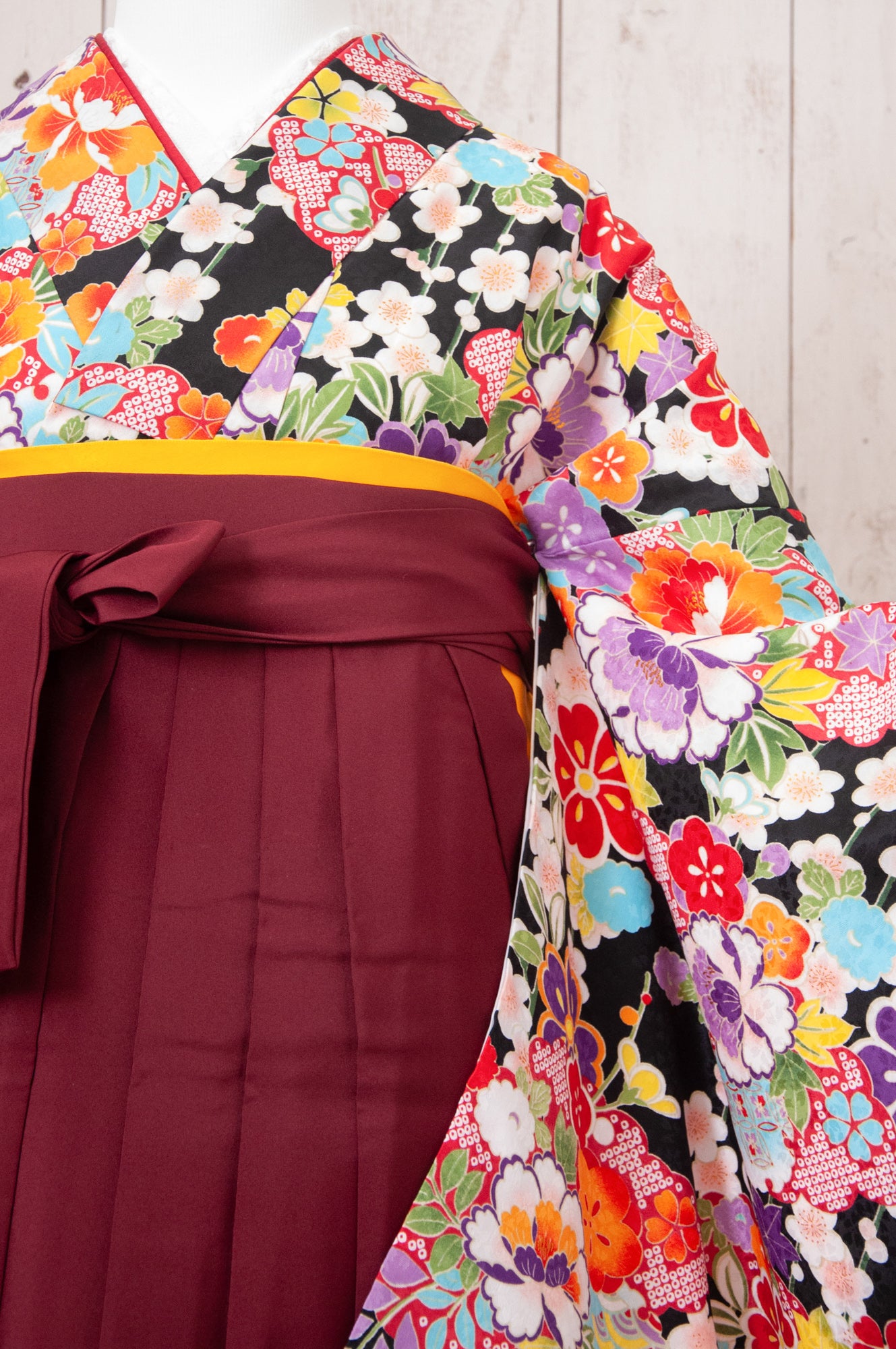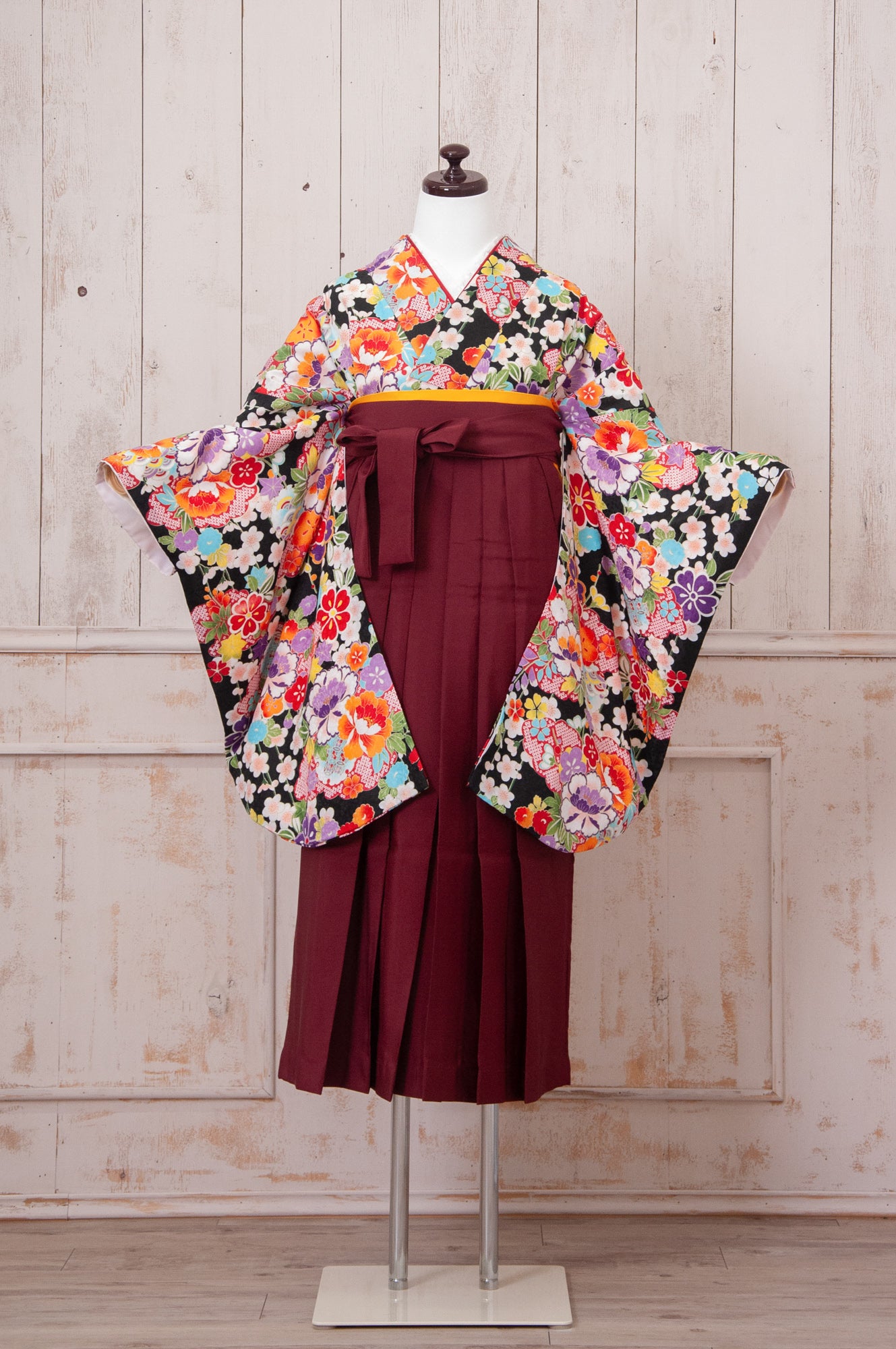 二尺袖着物、袴、半幅帯、長襦袢(半襟付き、ポリエステル)、重ね衿(着物に縫い付けの商品あり)、和装肌着、腰紐3本、伊達締め2本、衿芯、帯板、コーリンベルト1本、巾着