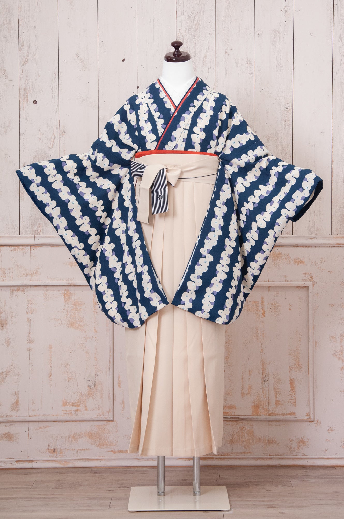 KR-104/レトロ椿紺地 卒業袴