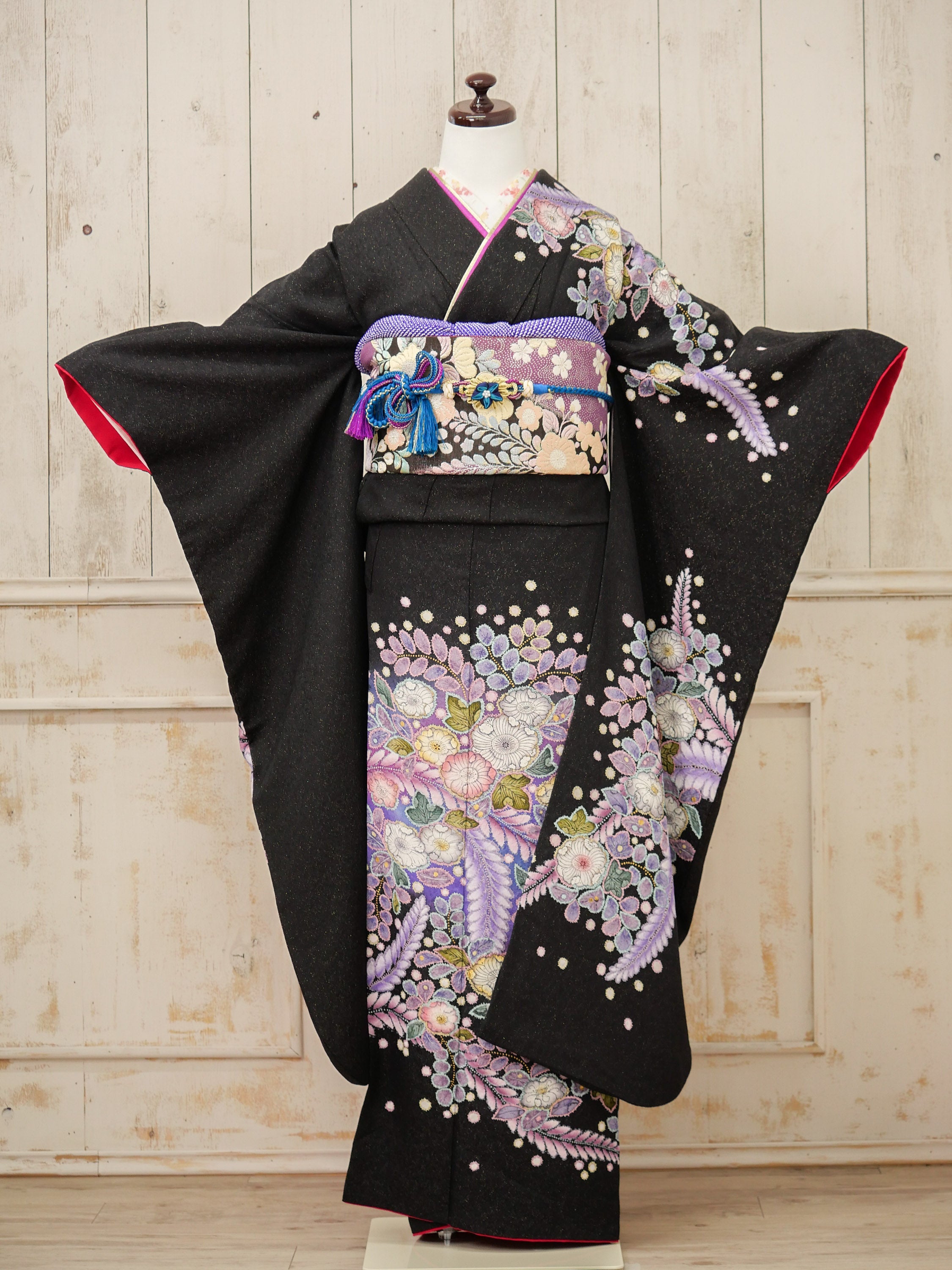 FK-034 黒地パープル 振袖