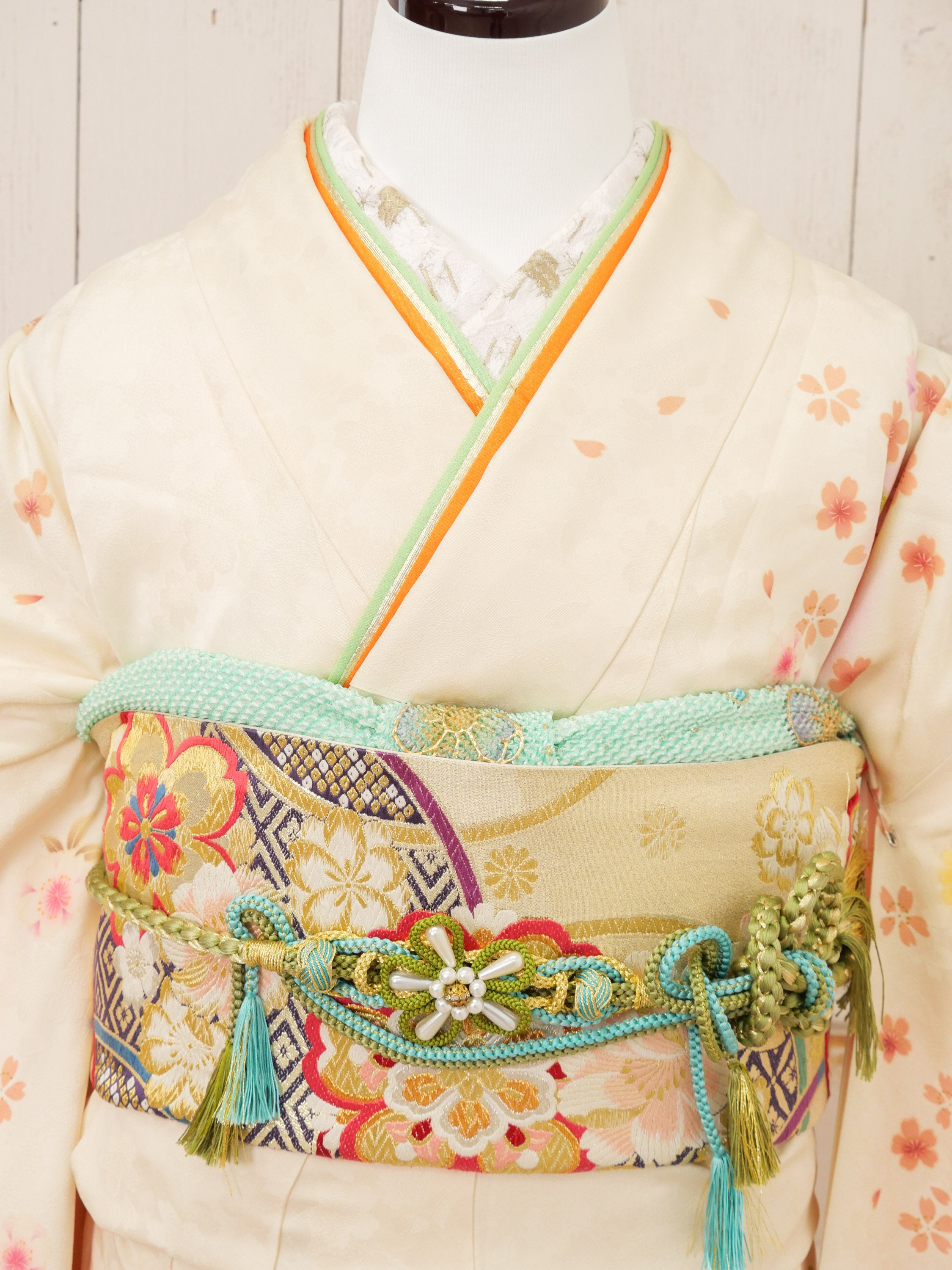 中振袖袋帯長襦袢(半襟付き、ポリエステル)重ね衿(着物に縫い付けの商品あり)帯揚げ帯締めショール腰紐5伊達締め2衿芯前板後板帯枕(ガーゼ付き)コーリンベルト1三重紐草履バッグ