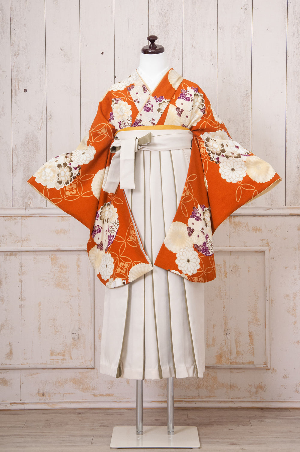 KR-137/JAPAN STYLE×中村里砂 グレージュ牡丹八重桜 卒業袴