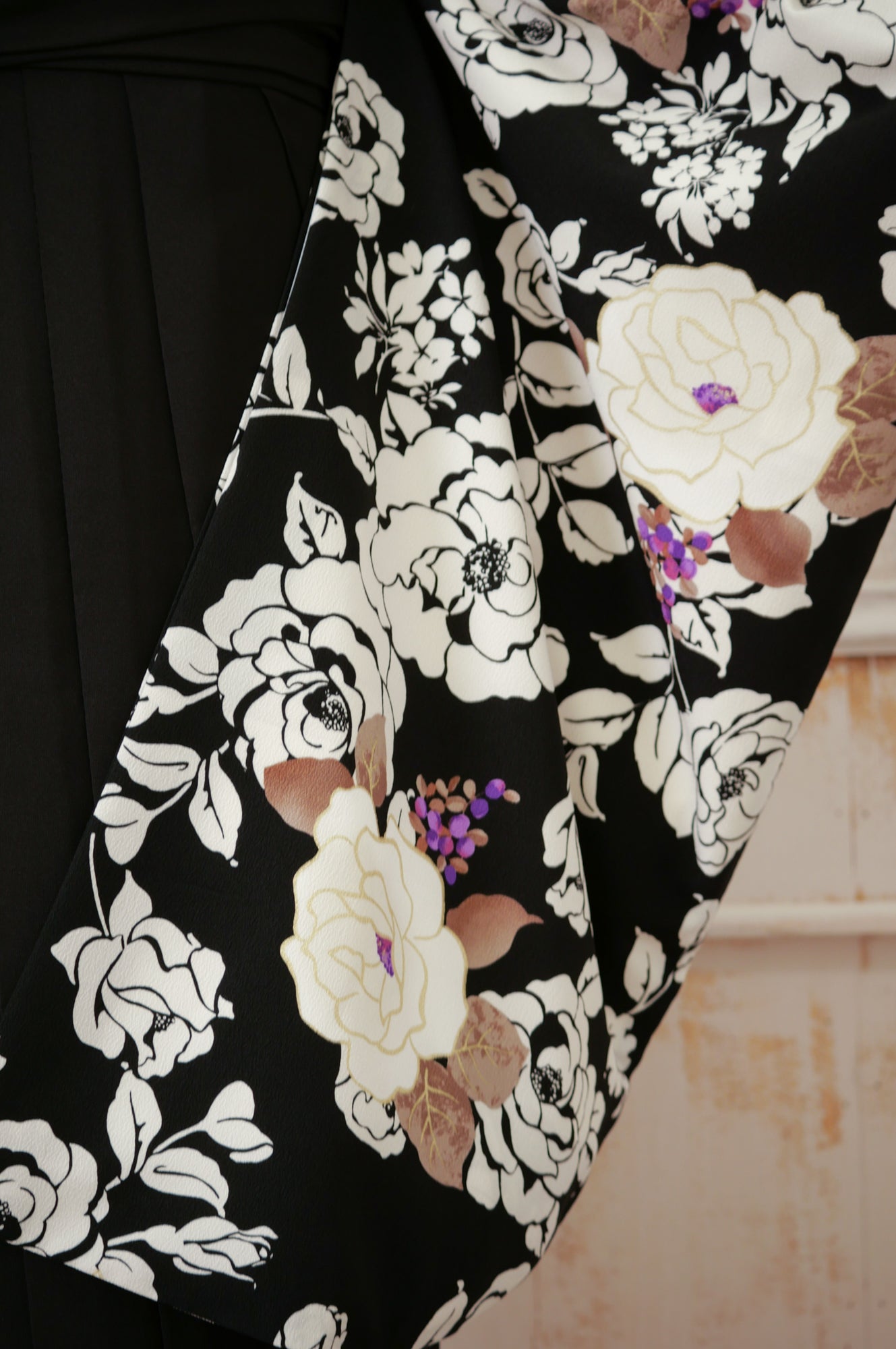 KR-020/JAPAN STYLE×中村里砂 黒地バラ柄 卒業袴