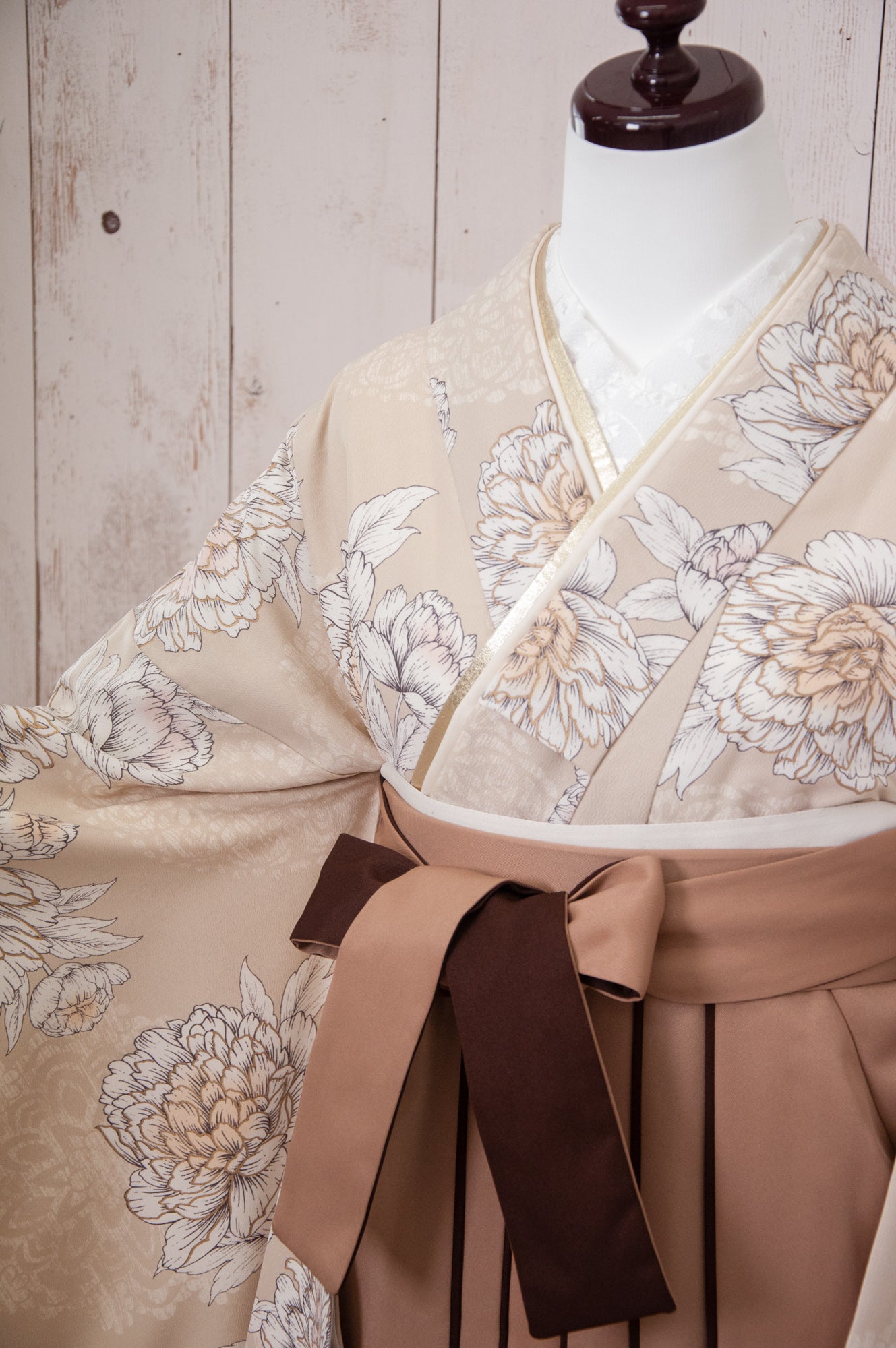 • KR-027/ベージュ牡丹 卒業袴 仙台 宮城